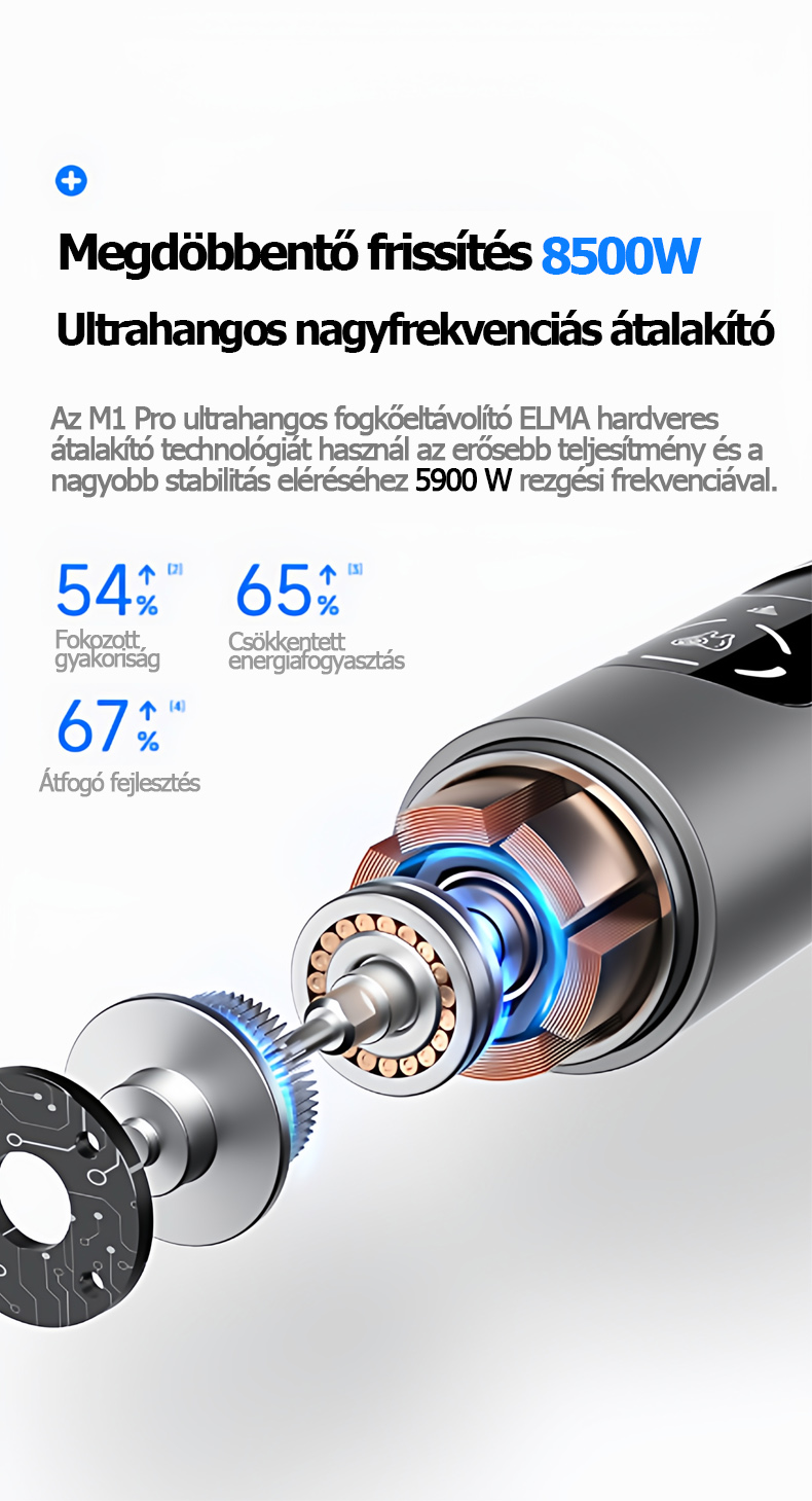 【T8 Ultra - Nagyfrekvenciás változat】6000 W-os ultrahangos hullám, nagy teljesítményű motor, 5 sebességfokozat, 2 tisztítófej és fogászati tükör.