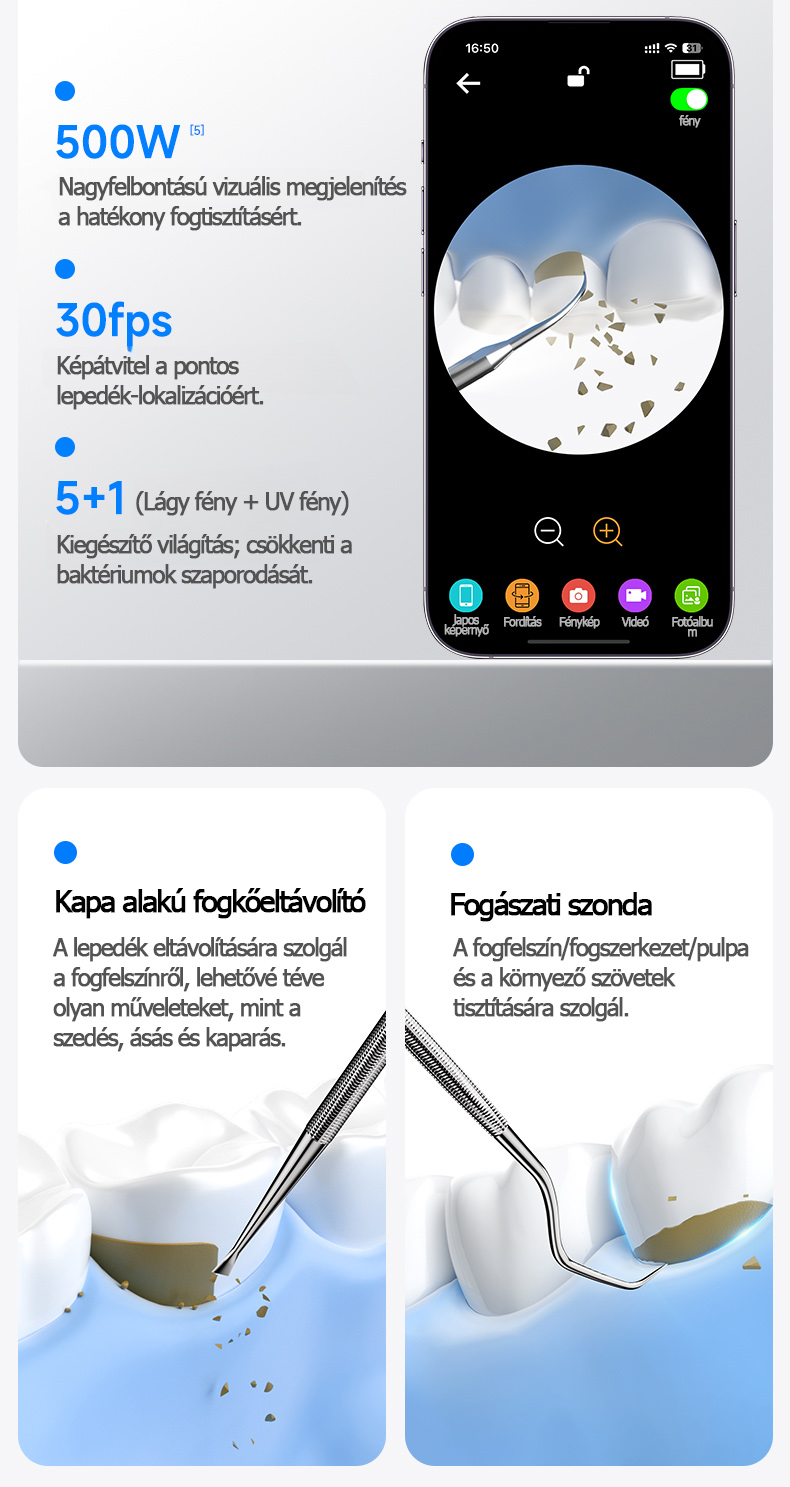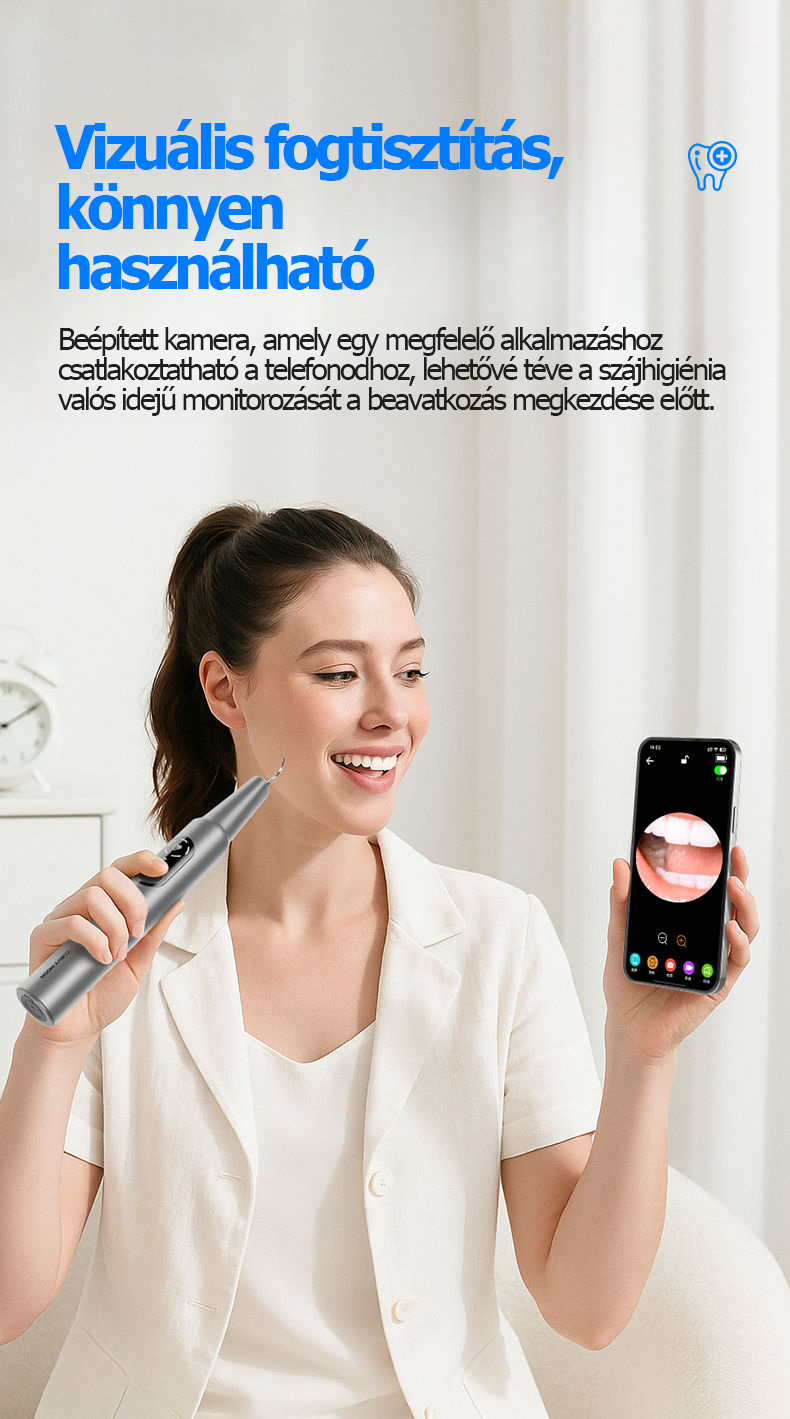 🔥[Standard vizuális változat - Simple White] 5700 W-os ultrahangos hullám + Nagyfelbontású vizuális vezérlés + 5 sebességfokozat + 2 tisztítófej + Fogászati tükör