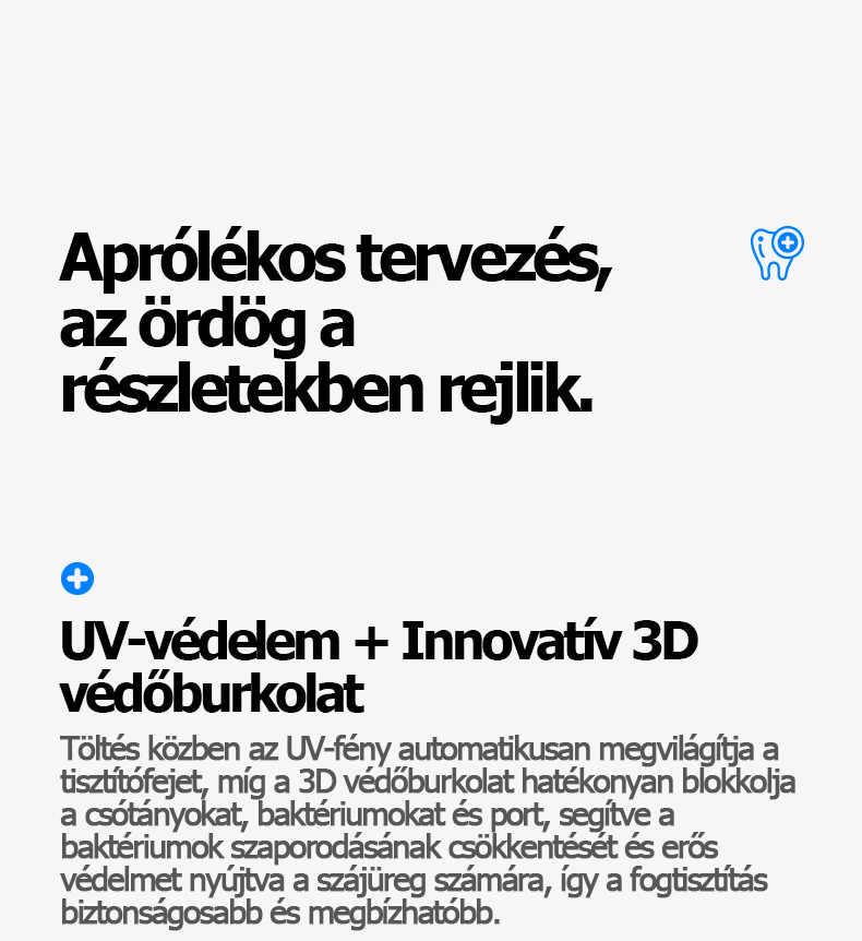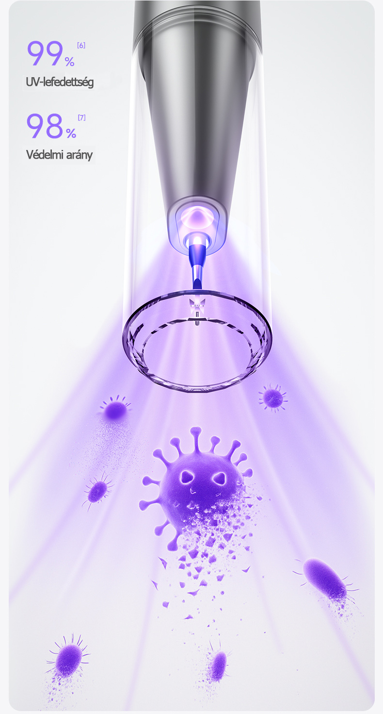 【Csúcskategóriás változat - T6pro - Nagyfrekvenciás változat ultraibolya fénnyel】 8000 W-os ultrahangos hullám, nagy teljesítmény + ultraibolya fényvédelem + 5 sebességfokozat + 2 tisztítófej + fertőtlenítő kendők + 500 mAh hosszú akkumulátor-üzemidő + fo