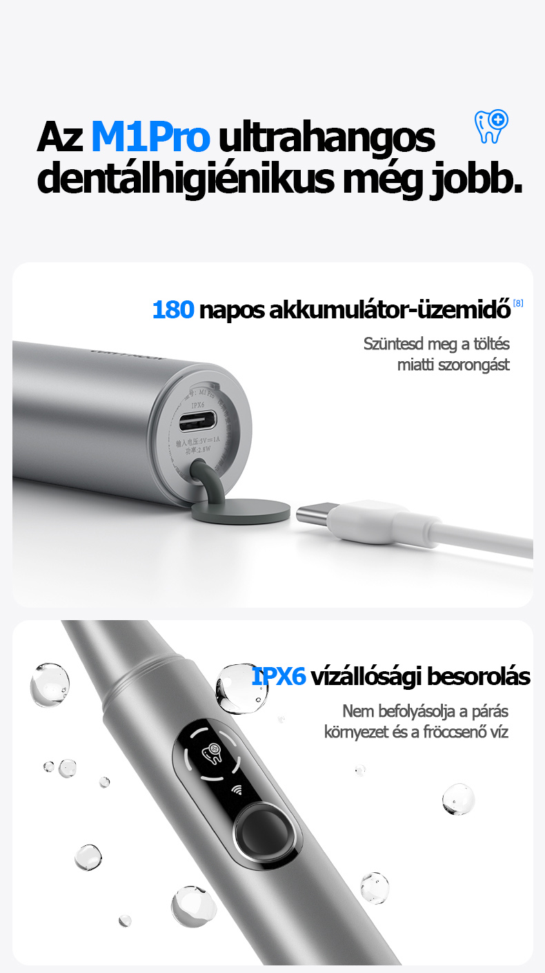 【T8Ultra - Alacsony frekvenciájú változat】3000 W ultrahangos teljesítmény + 5 sebességfokozat + 2 tisztítófej + műanyag fogászati tükör
