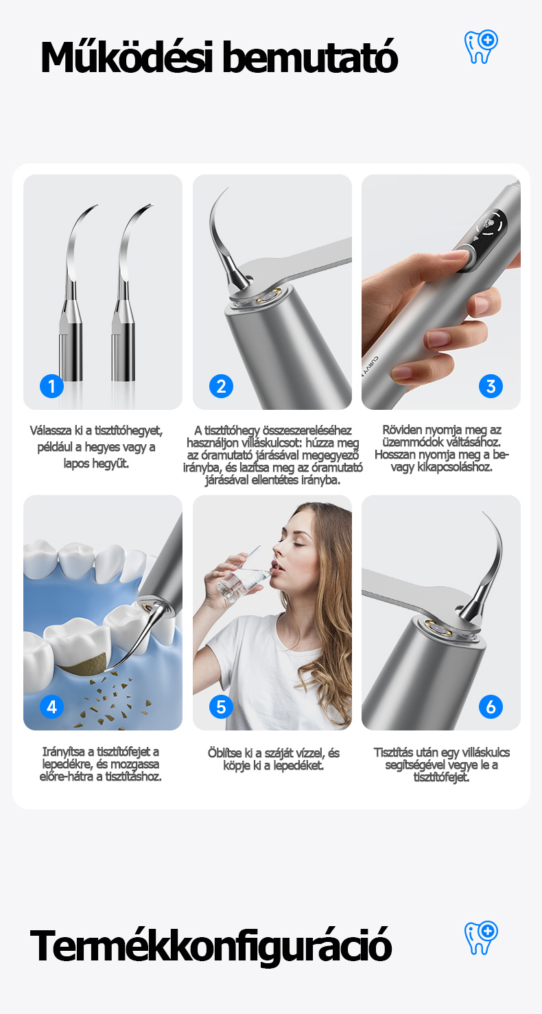 【Standard modell - T6 - Nagyfrekvenciás változat]】7000 W-os ultrahangos hullám +Erőteljes teljesítmény + 5 sebességfokozat + 2 tisztítófej + fogászati tükör