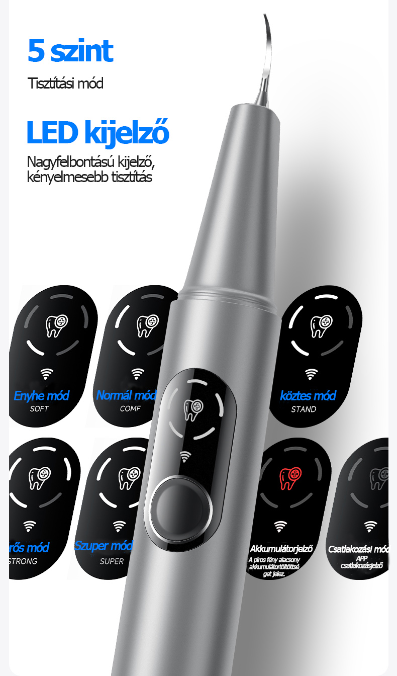 【T7-Alacsony Frekvenciaú Board】1200W nagyfrekvenciás ultrahangos hullám + 5 sebességfokozat + 2 tisztítófej + szájtükör